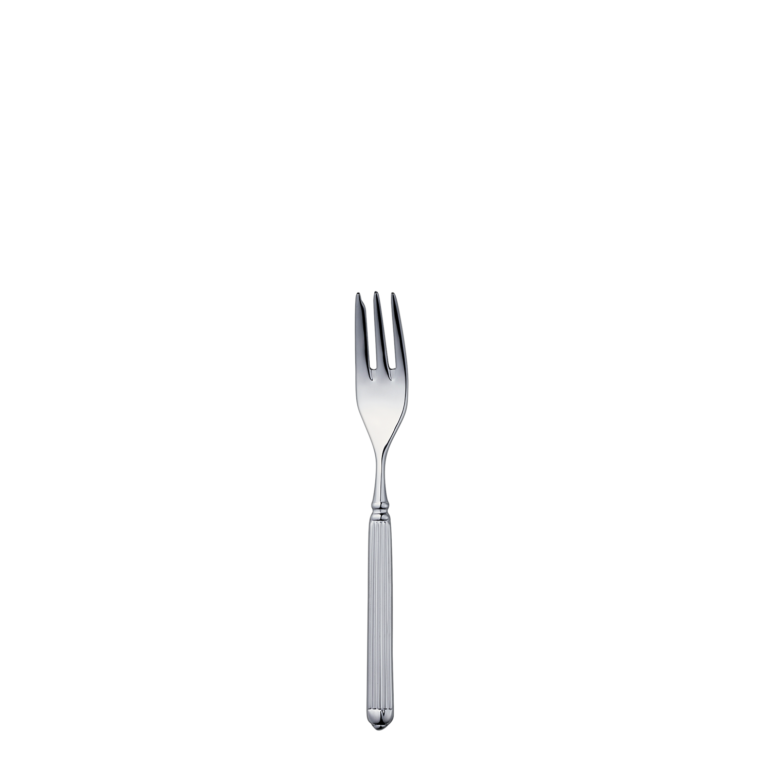 B3159Bakelsegaffel 164mm tillverkad av rostfritt stål i serien Ellade från italienska Pintinox. Elegant och tidlöst bestick från italienska Pintinox. Detta är en del i serien Ellade som är tillverkat i högkvalitativt och polerat rostfritt stål. Handtaget har en klassisk randning och avslutas med en dekorativt svarvad knopp.