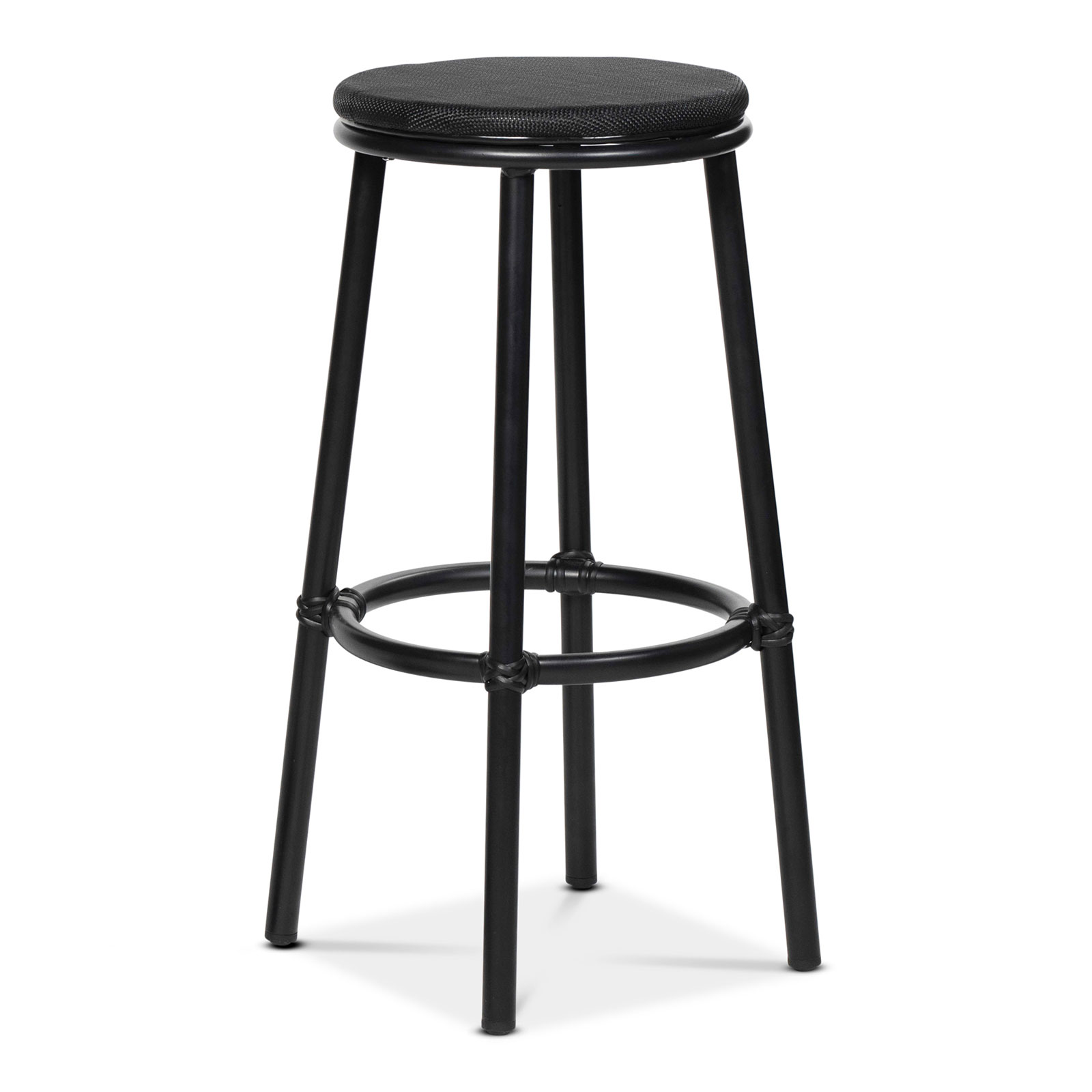 Barpall Grasse Aluminium. Barpallar är en enkel och prisvärd lösning för att skapa fler sittplatser. De kan placeras längs en vägg, i ett hörn eller framför baren, både inomhus och utomhus. Pallen är tillverkad med Ø 28 mm svartlackerad aluminiumstomme med ett bekvämt fotstöd. Sitsen är förstärkt och gjord av texteline.