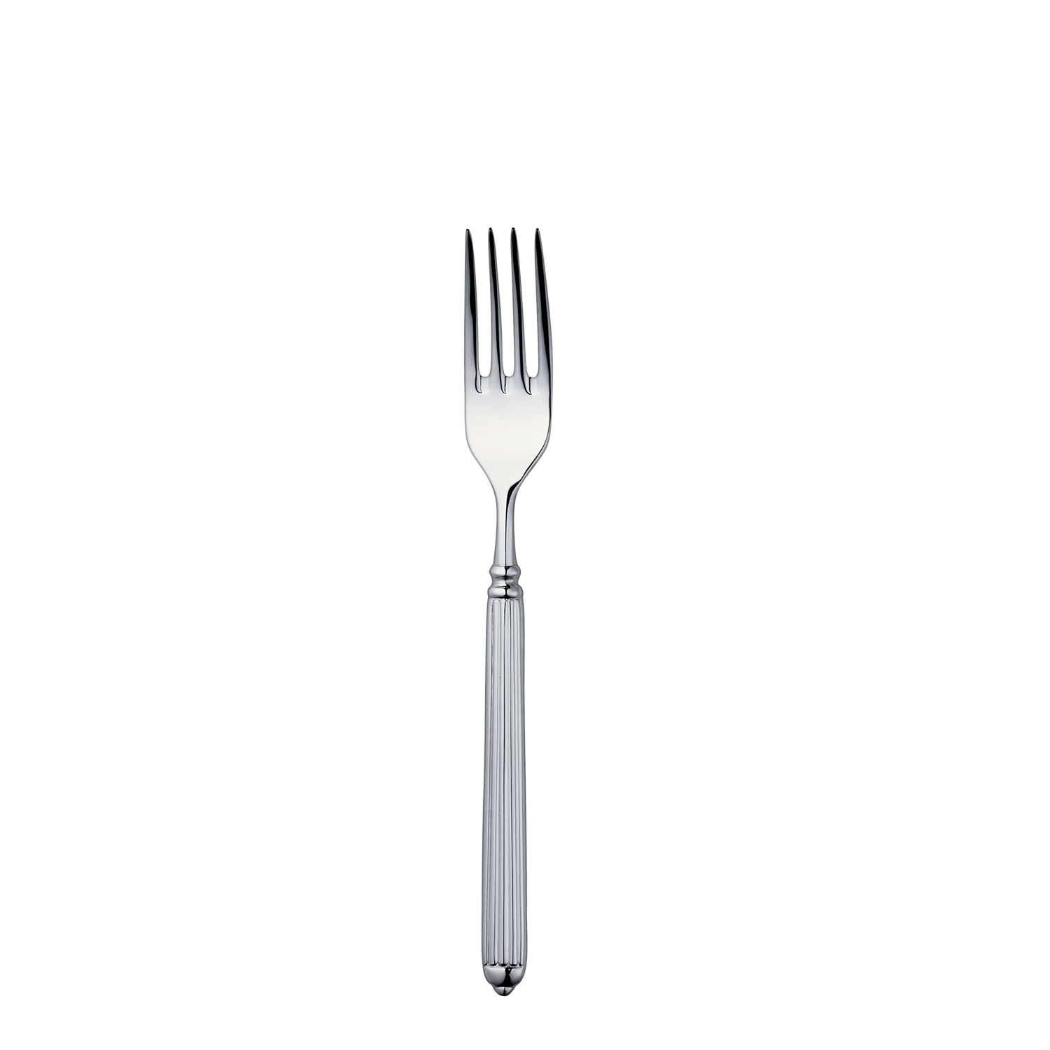 B3151Bordsgaffel 211mm tillverkad av rostfritt stål i serien Ellade från italienska Pintinox. Elegant och tidlöst bestick från italienska Pintinox. Detta är en del i serien Ellade som är tillverkat i högkvalitativt och polerat rostfritt stål. Handtaget har en klassisk randning och avslutas med en dekorativt svarvad knopp.