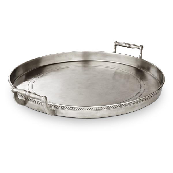 S5458Rund bricka med handtag, diameter 40,5cm. Tillverkad för hand i tenn av Italienska tenntillverkare sedan 1954.