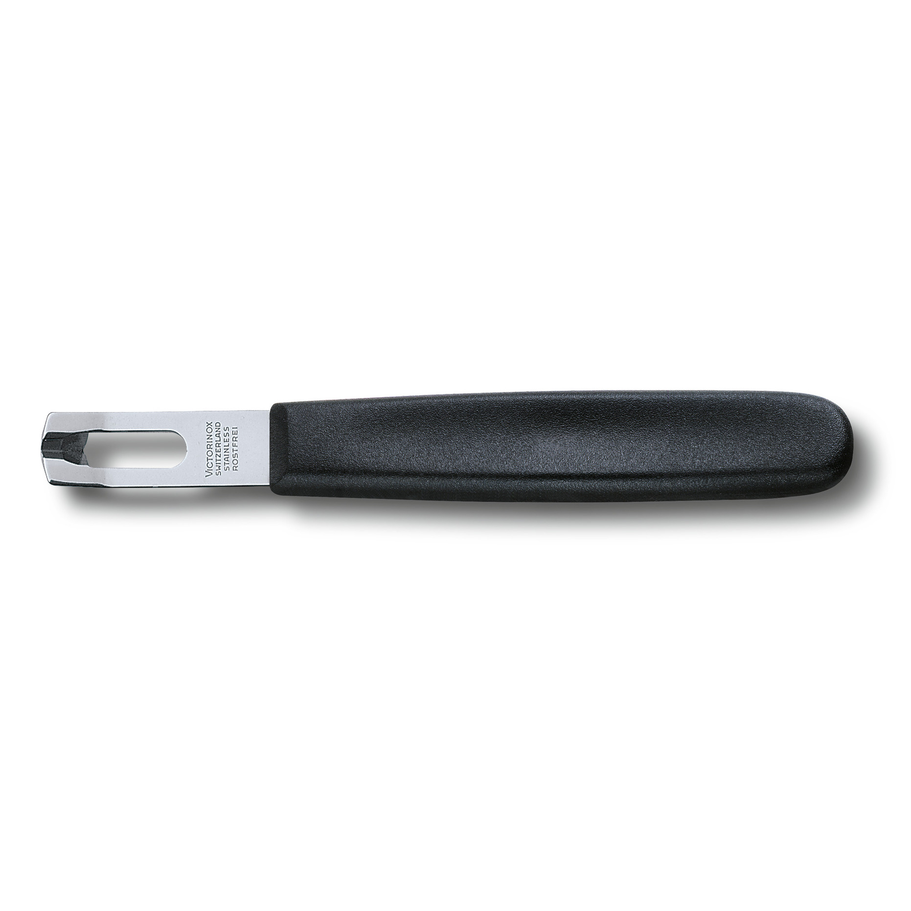 K6168Citronkniv i rostfritt stål med svart plasthandtag i serien Swiss classic från Victorinox. Kniven fungerar utmärkt för att ciselera och göra mönster i skalet på citrusfrukter.