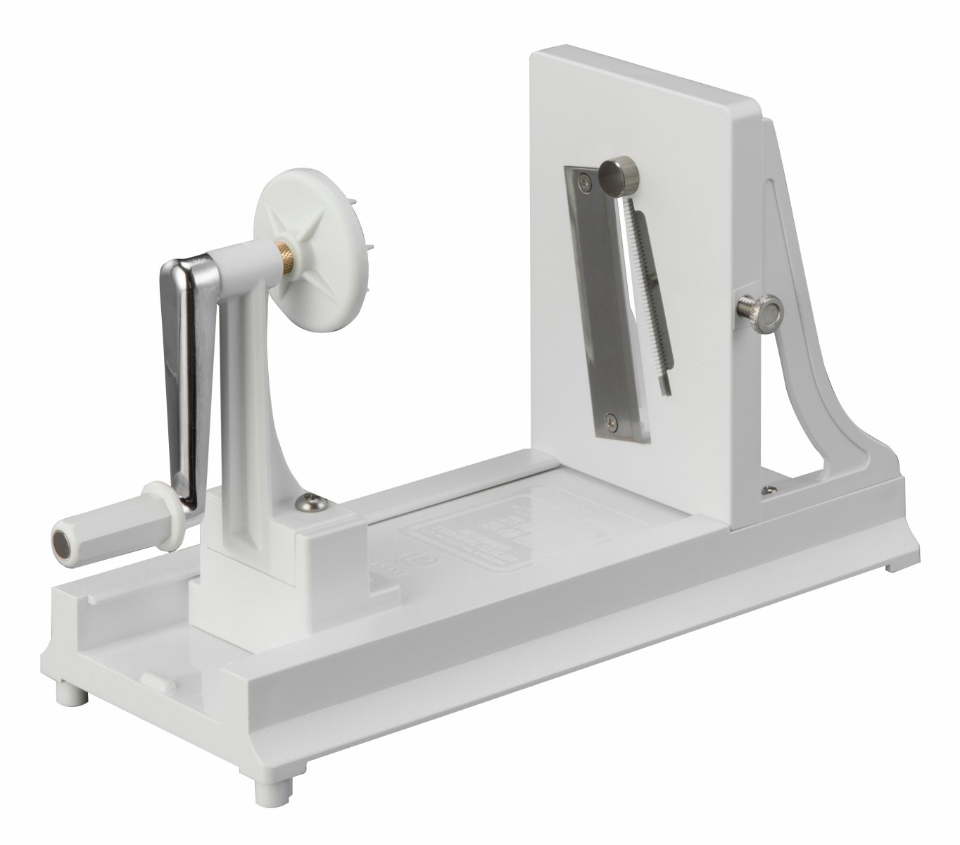 Horisontell grönsakssvarv med omslipbart blad. Benriners grönsaksvarv skivar 2 mm och har två stimmelblad vilka strimlar 1,2 mm respektive 4 mm. Använd svarven till att skära tunna spiraler eller till att kärna ur stavar från råvarans mitt. Svarven klarar att svarva grönsaker upp till 170 mm samt att kärna ur 12 mm. Den är lätt att ta isär för disk. Handdisk rekommenderas.