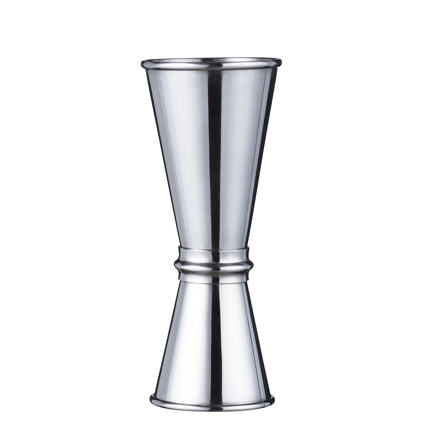Jigger Yukiwa. Jiggers är ett vändbart mätglas, de används för att snabbt och exakt mäta upp ingredienser till drinken. Denna är i japansk design och tillverkad i blankpolerat rostfritt stål, ena sidan rymmer 28ml och den andra 53ml.