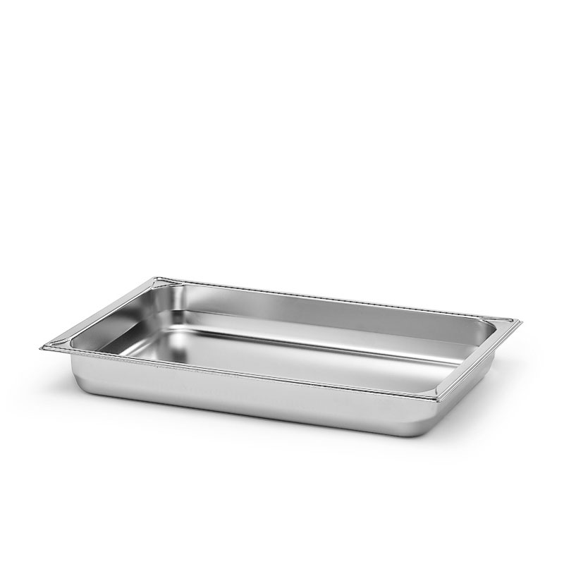 Kantin tillverkad av rostfritt stål 18/10 från Kawasaki steel / japan. Förstärkta hörn för att minska ”hundöron” och kantskador. Kantinen är staplingsbar utan att kila fast. Tillverkad enligt EN631-1 Gastronorm standard. GN inom matlagning och kökutrustning står för Gastronorm. Gastronorm är en standard som används över hela världen för att standardisera mått och storlekar på bland annat formar, lådor och fat som används i restaurangkök och storkök. GN-standarderna gör hanteringen och förvaringen av mat enkel samt underlättar planeringen av matlagning och servering.