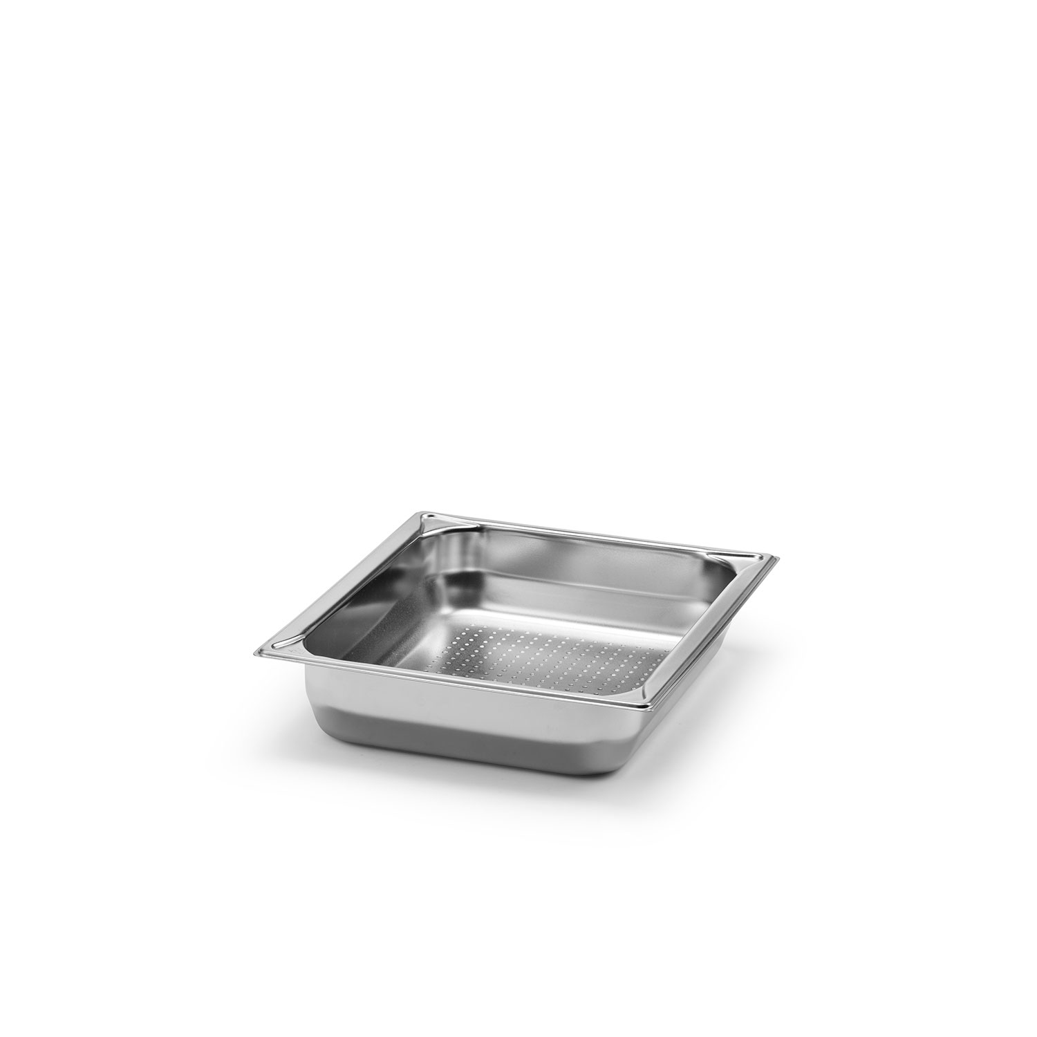 Perforerad kantin tillverkad av rostfritt stål 18/10 från Kawasaki steel / japan. Förstärkta hörn för att minska ”hundöron” och kantskador. Kantinen är staplingsbar utan att kila fast. Tillverkad enligt EN631-1 Gastronorm standard. GN inom matlagning och kökutrustning står för Gastronorm. Gastronorm är en standard som används över hela världen för att standardisera mått och storlekar på bland annat formar, lådor och fat som används i restaurangkök och storkök. GN-standarderna gör hanteringen och förvaringen av mat enkel samt underlättar planeringen av matlagning och servering.