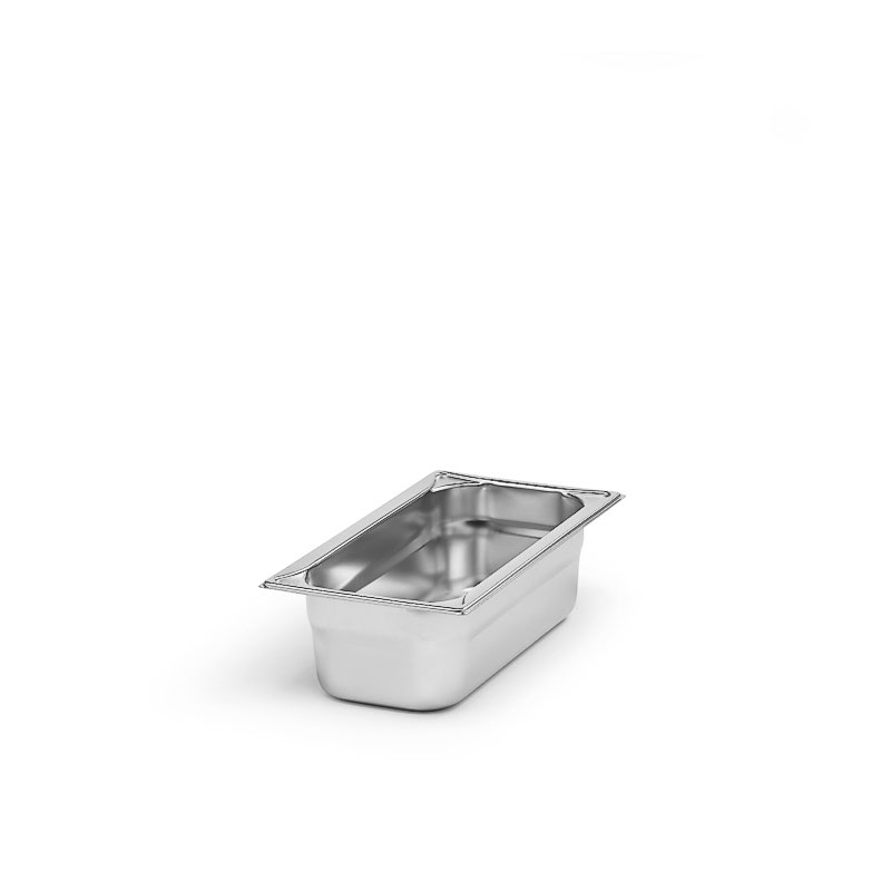 GN 1/3: Tredjedelsstorlek, vanligtvis 325×176 mm.
