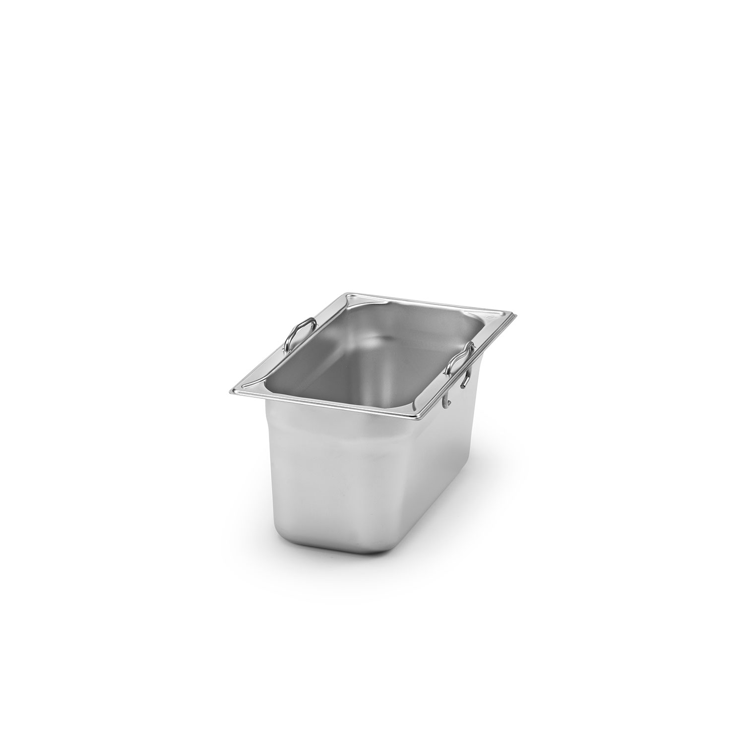 K1744Kantin tillverkad av rostfritt stål 18/10 från Kawasaki steel / japan. Förstärkta hörn för att minska ”hundöron” och kantskador. Handtagen är fällbara och kantinen är staplingsbar utan att kila fast. Tillverkad enligt EN631-1 Gastronorm standard.