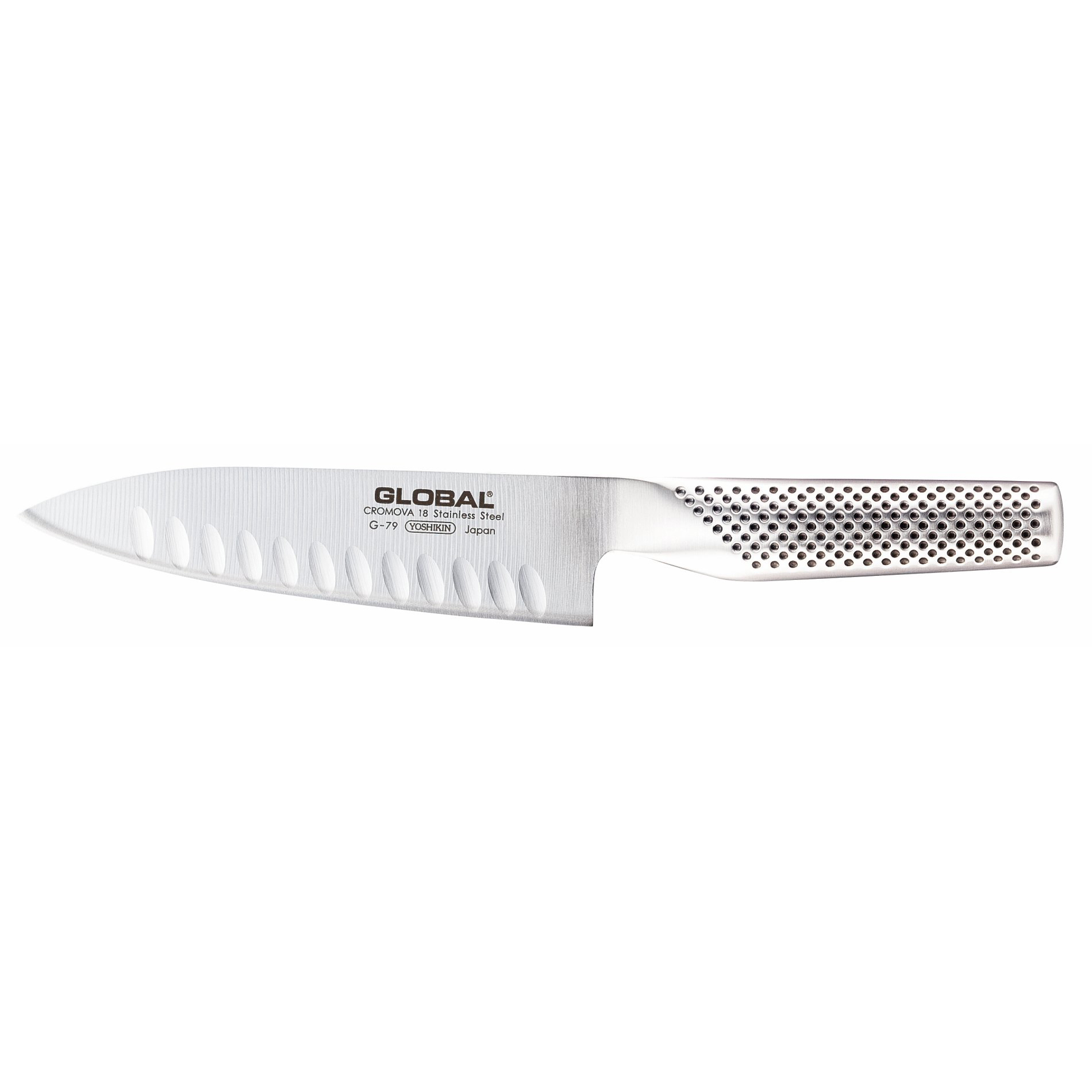 En kockkniv i mindre modell som fungerar ungefär som en allkniv. Kniven är olivslipad, vilket betyder att den har små fördjupningar i knivbladet. Det gör att råvaran inte lika lätt fastnar i kniven när du skär.