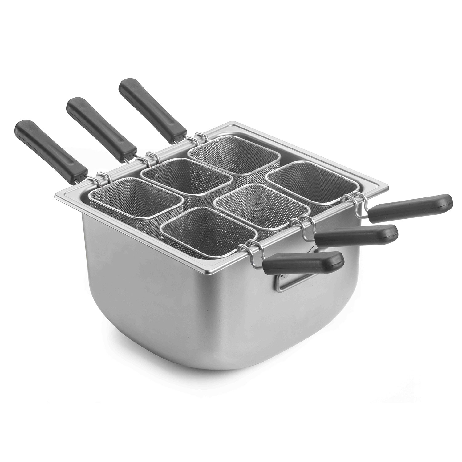 K1069Pastakittel 38x35cm ink.6 pastakorgar 14x10cm tillverkad av rostfritt stål från italienska Pintinox.