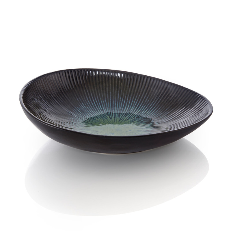 Style Lights från tyska WMF är ett vackert komplement till det klassiskt vita porslinet. Deep ocean green har en blank svart utsida och mjukt oregelbundna former. Insidan har ett reliefmönster i havsgrönt och svart.