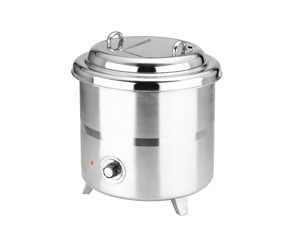 M9024Soppkittel helt i rostfritt stål från Sunnex. Volym 10L, levereras inklusive rostfri soppslev. Termostatvred med av/på funktion. Yttermått: Ø 380 mm. Höjd 430 mm. Volym 10 l. Effekt: 230V, 50Hz, 400-450W