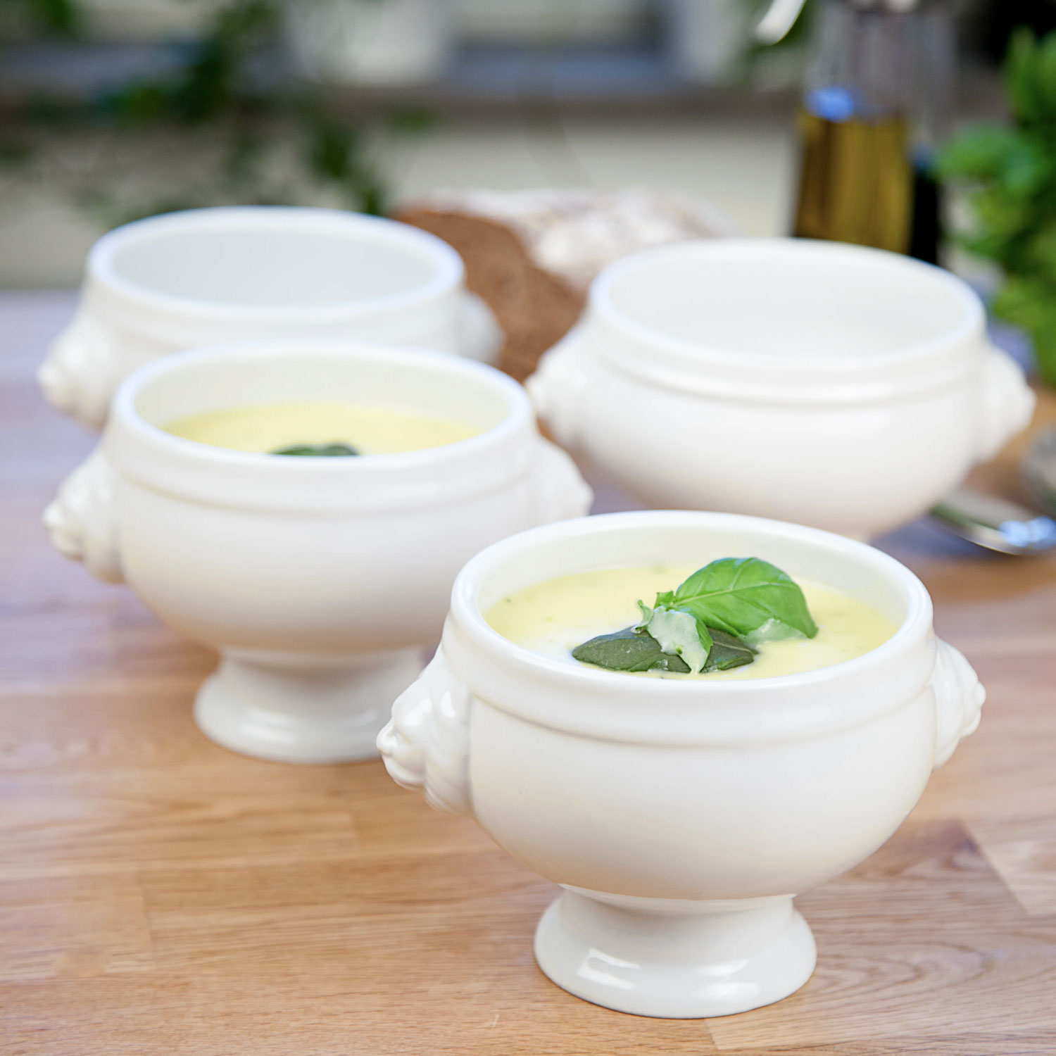 Klassisk soppskål med handtag utformade som lejon på sidorna. Passar utmärkt för värmande soppor.