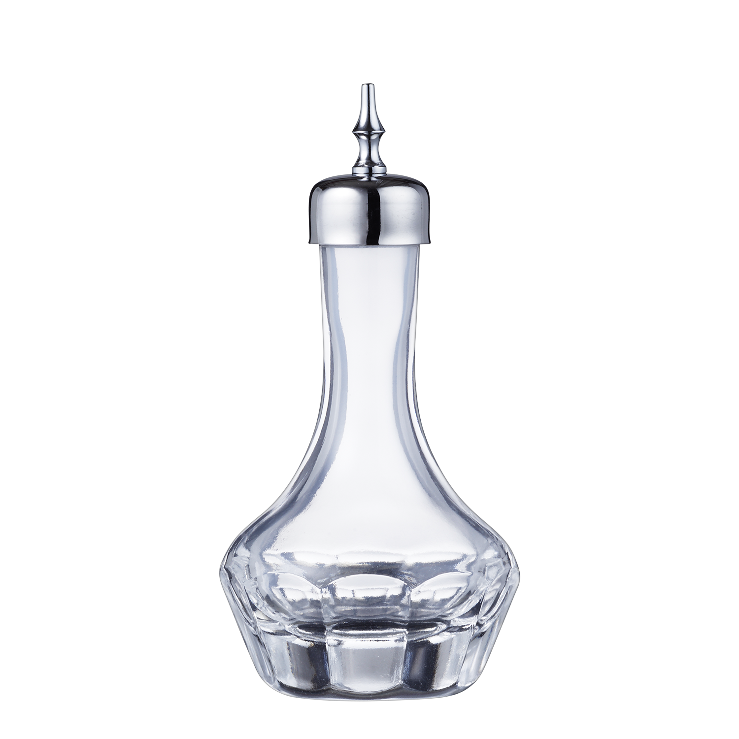 Elegant stänkflaska i art-deco stil med ett utskuret mönster runt flaskan. I stänkflaskan förvarar du bitters och andra tinkturer för att droppvis och exakt tillföra smaksättning till drinken.