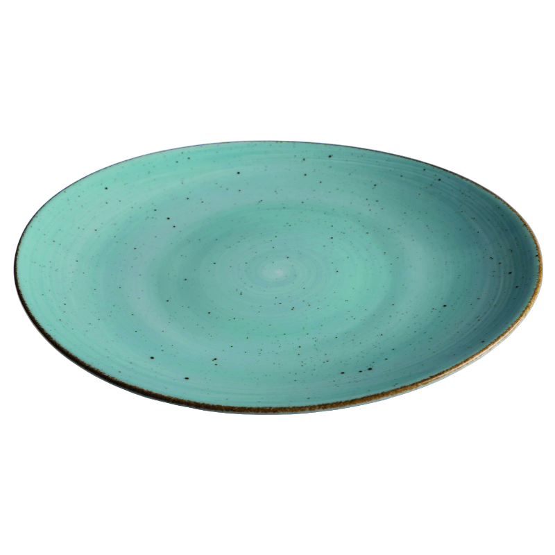 Oval handmålad tallrik i turkost med bruna prickar. Stapelbar, tål mikrovågsugn, diskmaskin och frys.