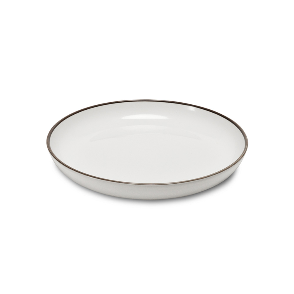 Brun tallrik med hög kant tillverkad av porslin i serien Streck från Figgjo.