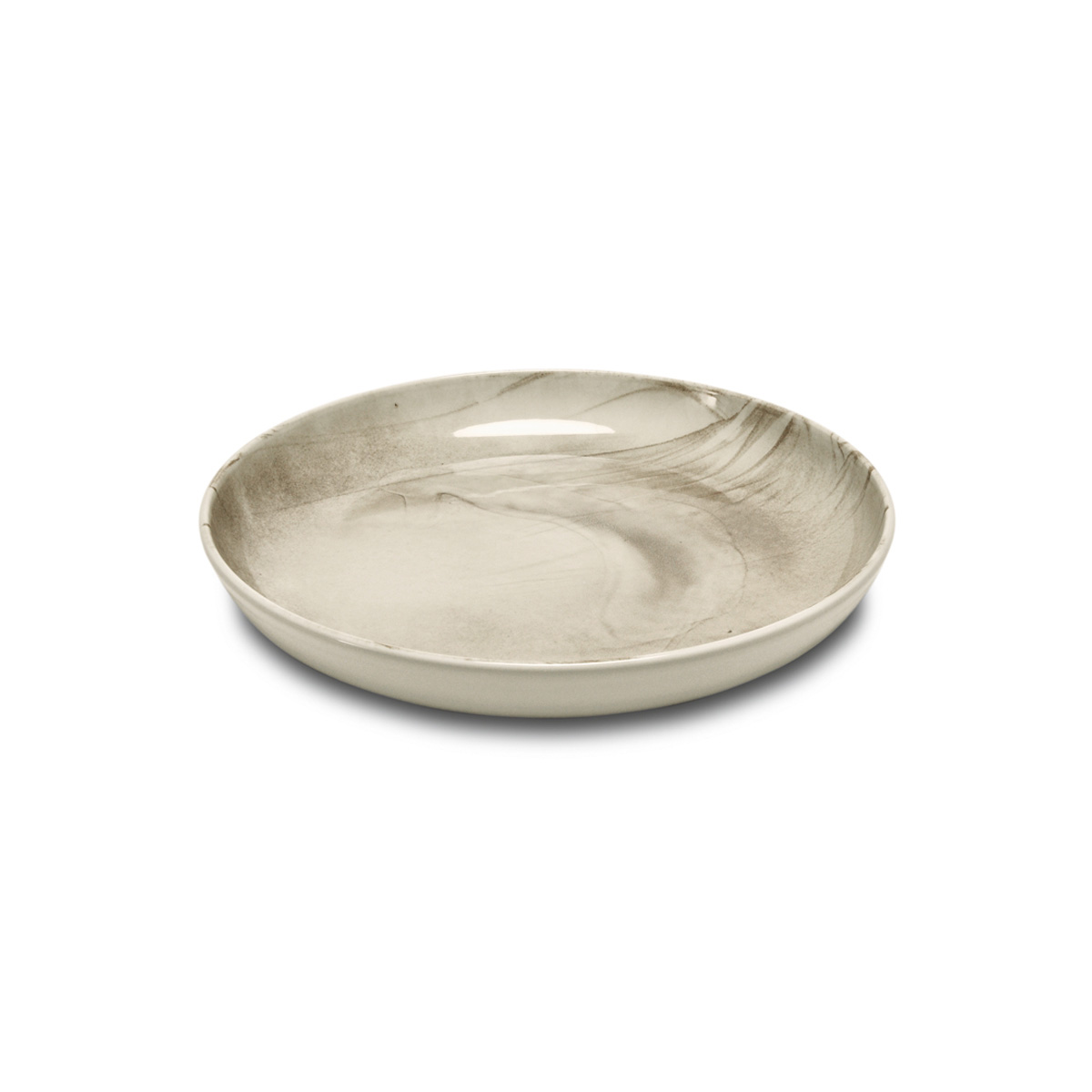 Brun tallrik med hög kant tillverkad av porslin i serien Flom från Figgjo.