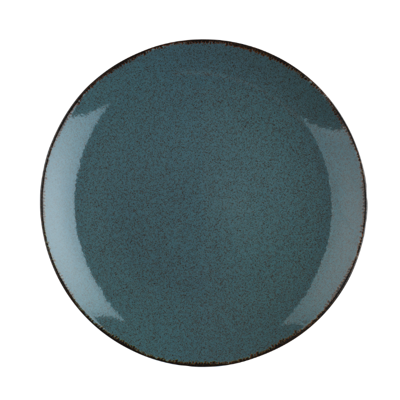 Vacker mattallrik utan bräm med fin gråblå färg och oregelbunden dekor som passar många slags kök. Stapelbar, tål mikrovågsugn, diskmaskin och frys.