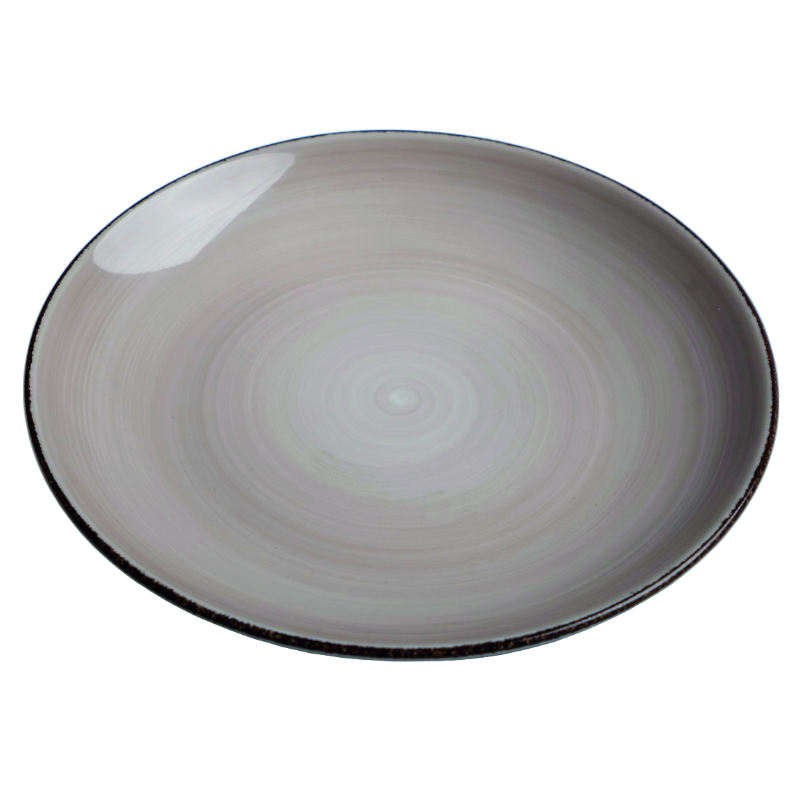 P8204Handmålad beige tallrik med penseldrag. Stapelbar, tål mikrovågsugn, diskmaskin och frys.