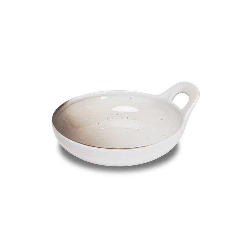 Brun tallrik med hög kant och handtag tillverkad av porslin i serien Skygge från Figgjo.