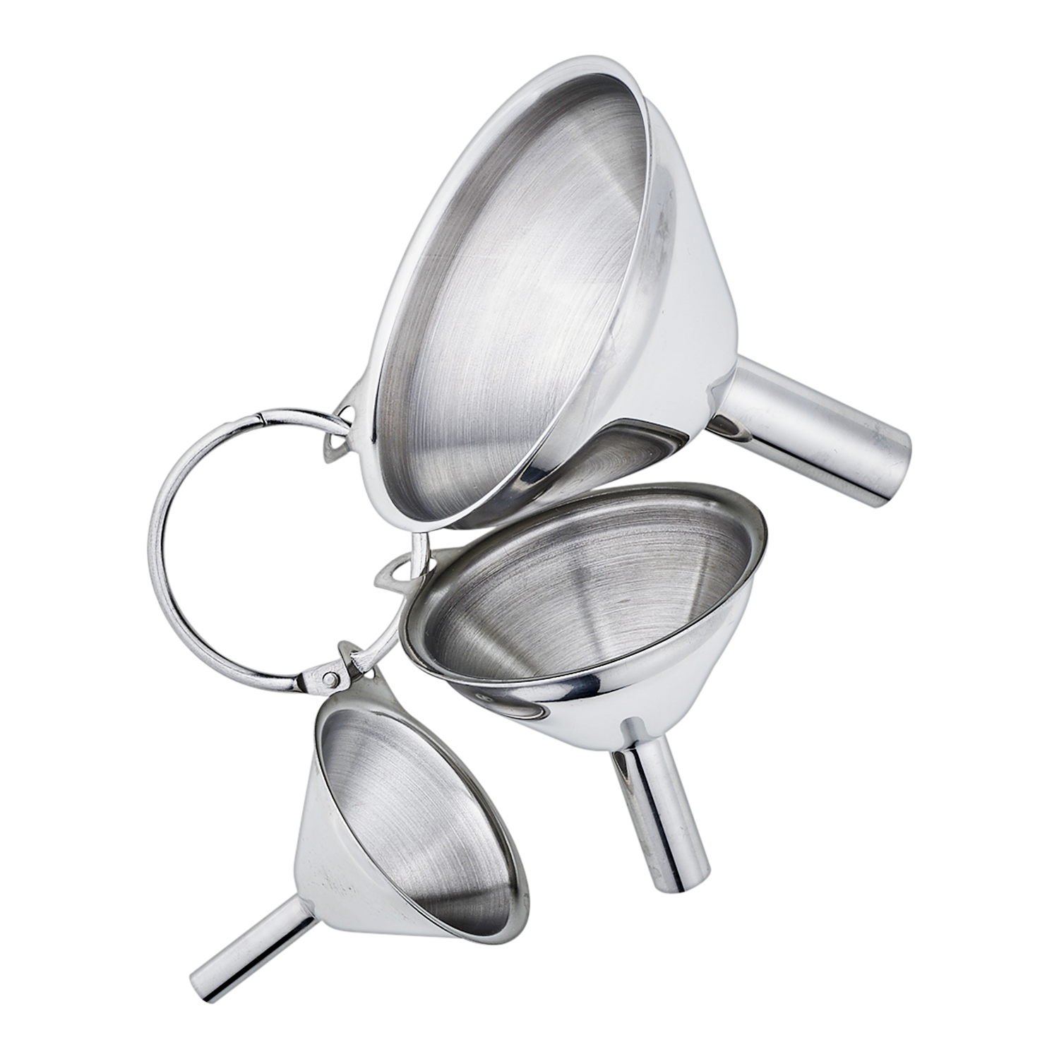 Praktisk set med småtrattar som kan användas för att fylla på kryddokvarnar, olje- och vinägerflaskor samt till andra småbestyr.